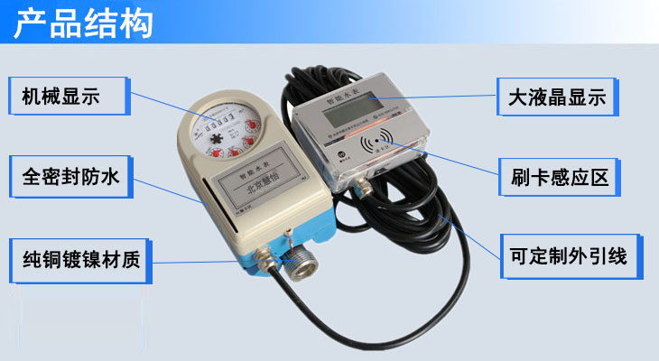 农村安饮专用水表也称为外引线分体显示IC卡智能水表,是安在回水井、室外露天井中的专用水表,把普通智能水表的显示及数据读写模块与水表控制模块分离成二个单独的部件,这两个部件通过信号连接。农村安饮专用水表其主要特点是可以长期浸在水中工作,适合于刷卡不方便的地区用表,如:地下井,露天井等,智能水表可以记录表的运行情况,可以提高管理效率,有效防止欠费,避免上门抄表,实现节约用水。