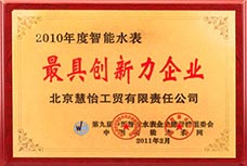 热力祝贺北京慧怡科技有限责任公司在第九届中国智能水表企业排行榜活动中荣获“2010年度中国智能水表最具创新力企业”,联合中国智能水表网评审组一直通过认可。北京慧怡科技有限公司坚持精工细作只为造好表。这种不忘初心的态度,使得慧怡一直谦卑地在自身的技术上不断的发展创新,也让慧怡能够以人性化的角度为客户服务。