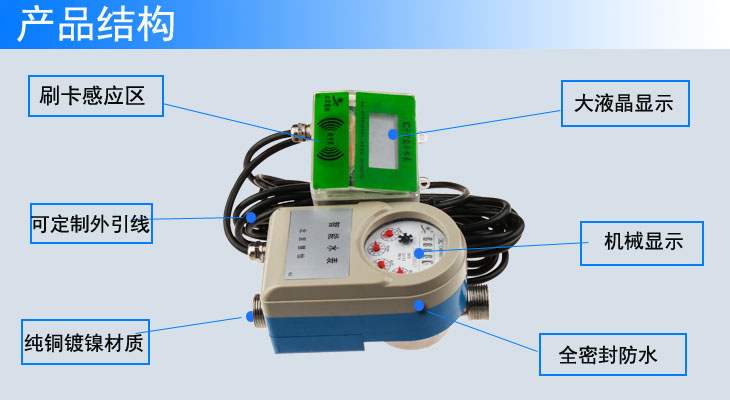 井下专用的智能射频卡水表,是分析显示的IC卡智能水表。慧怡水表根据农村回水井、管道井和露天回水井的用表环境研发了井下专用的射频卡水表。井下专用的射频卡水表是把普通智能水表的显示和数据读写模块与水表的控制模块分成两个单独部件,这两个部件依靠通信信号连接通讯。